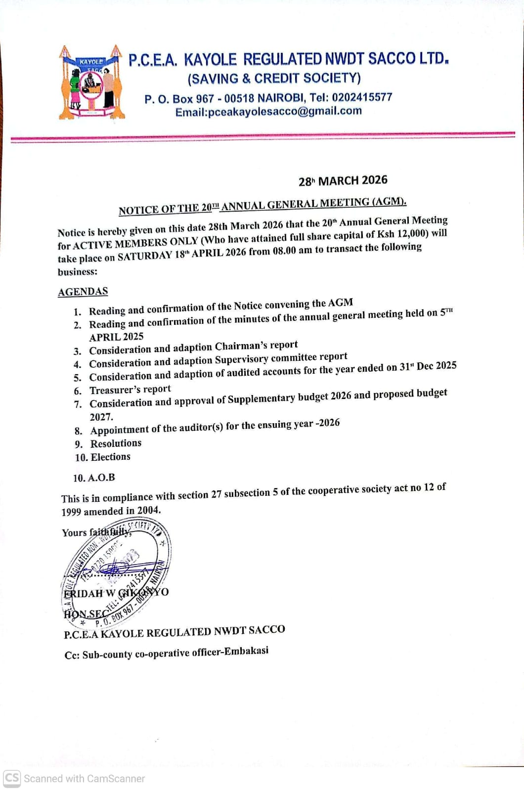 Email: info@pceakayolesacco.co.ke orpceakayolesacco@gmail.com